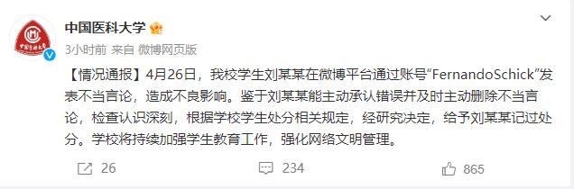 学生球迷网上发表不当言论攻击蓉城,被学校记过处分