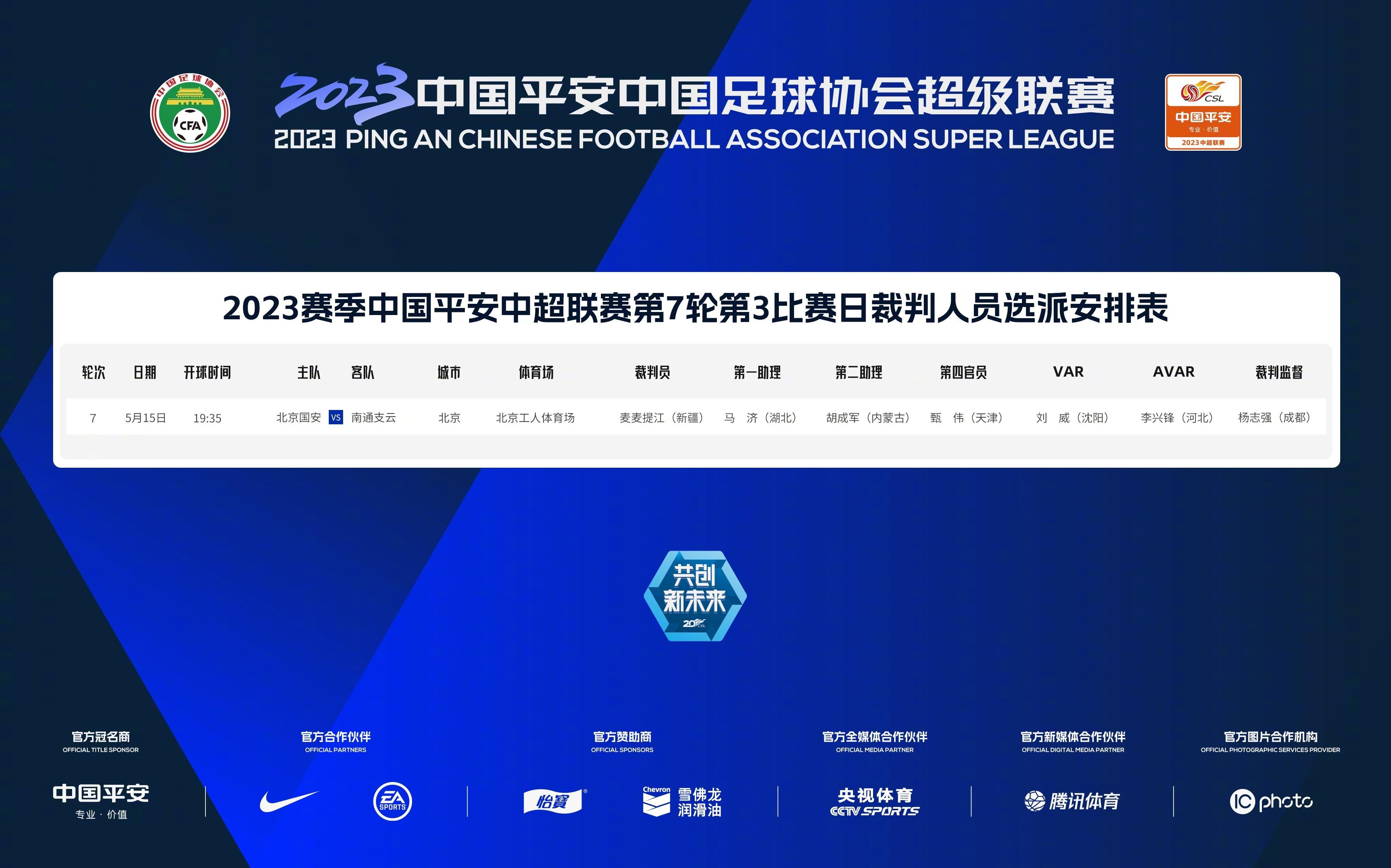 国安vs南通裁判名单:麦麦提江主裁判,刘威VAR