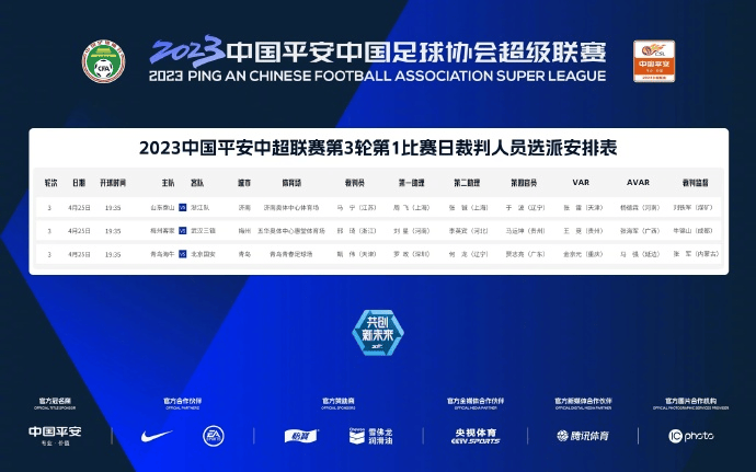 中超裁判安排:马宁执法泰山对浙江,甄伟执法海牛对国安