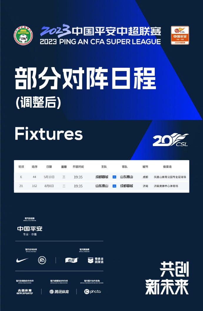 官方:赛区临时大型活动安排,泰山、蓉城调整主客场安排