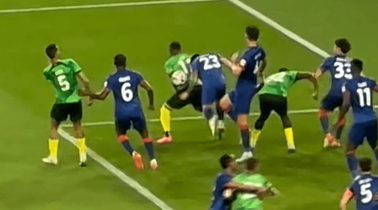 国安角球禁区乱战,德索萨低射扳回一球,3-1