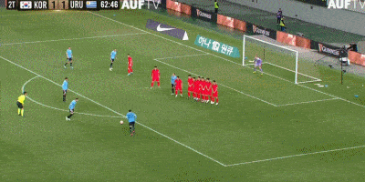 莫雷拉任意球被扑出,贝西诺补射破门,乌拉圭2-1韩国