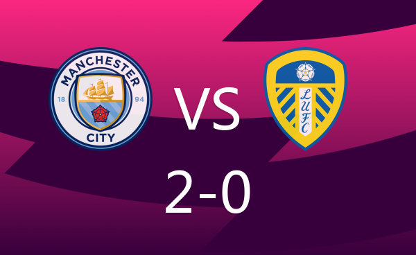 半场:曼城2-0利兹联,福登开场闪击,格瓦角球混战破门
