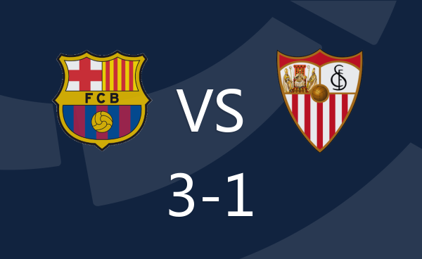巴塞罗那3-1塞维利亚半场数据:射门7-5,绝对机会4-0