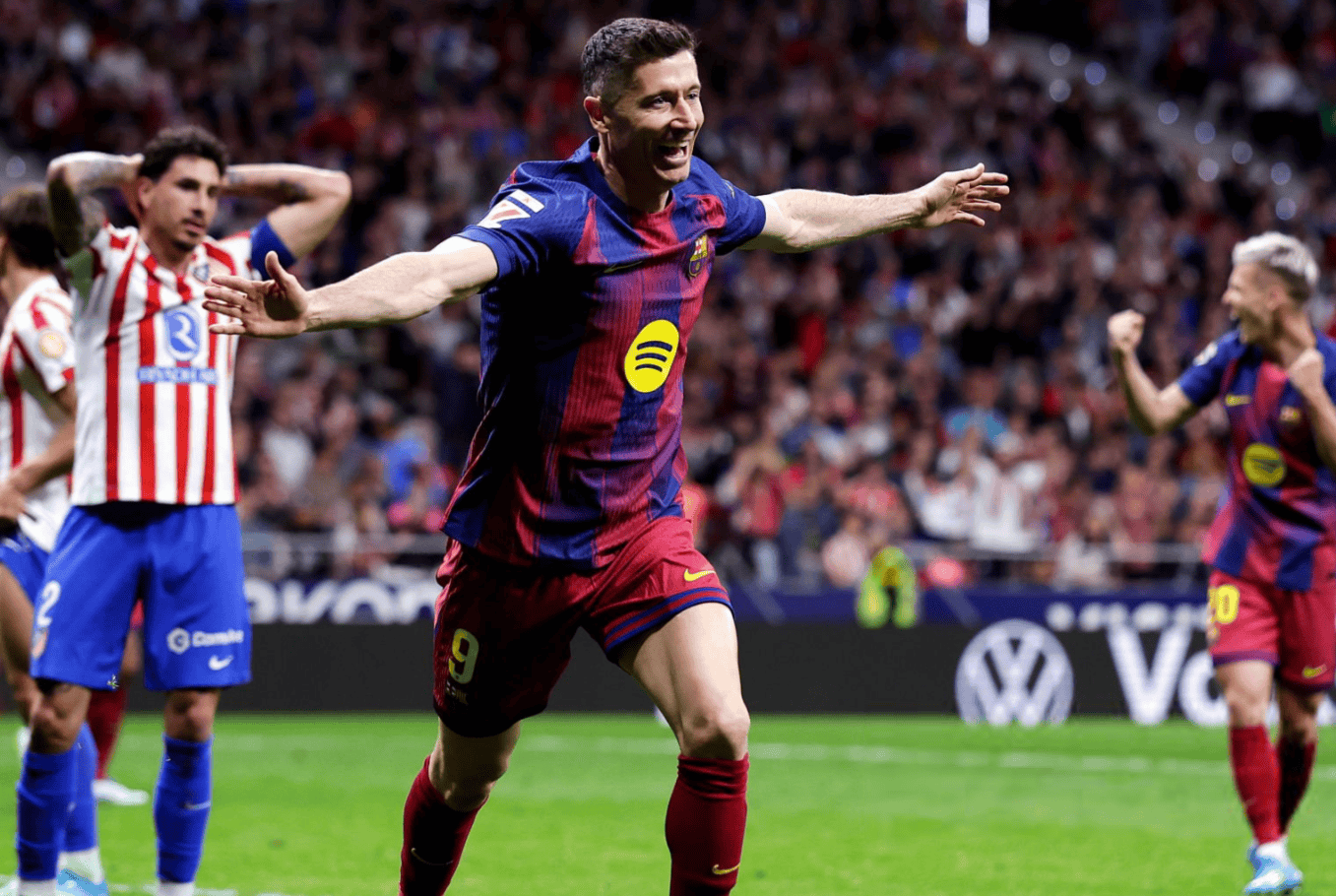 这是足球比赛吗?马竞遭巴萨逆转,莱万胸口碎大石绝杀