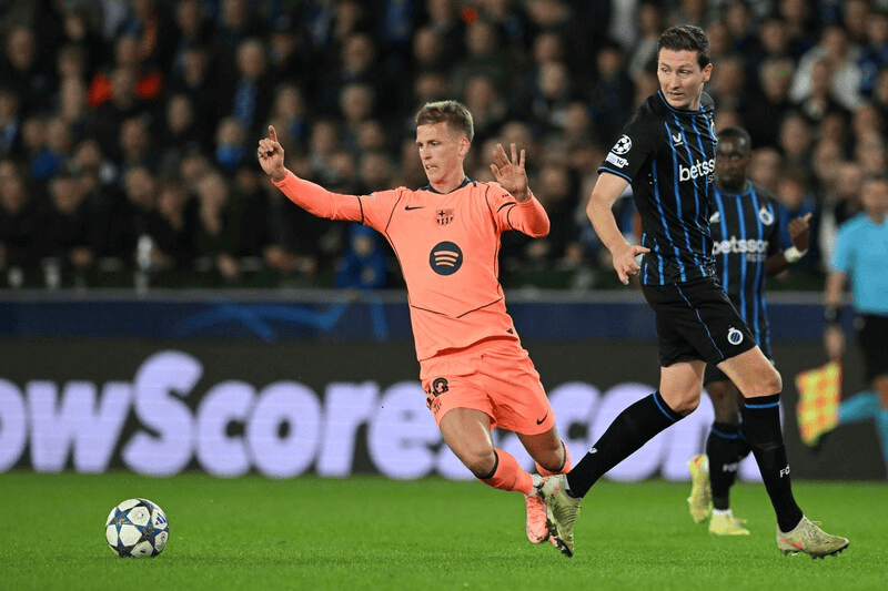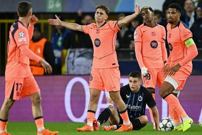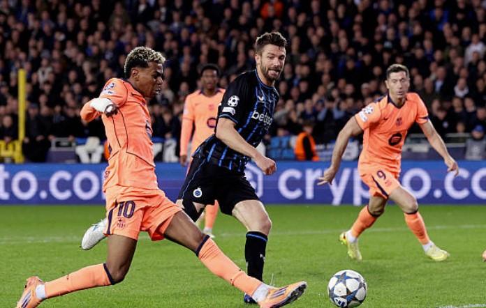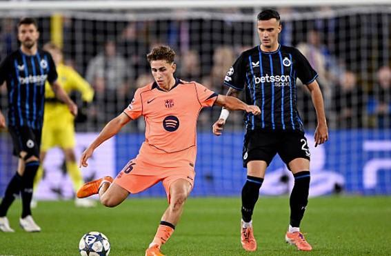 布鲁日2-1巴萨半场数据:控球21%-79%,良机2-2,射门4-9