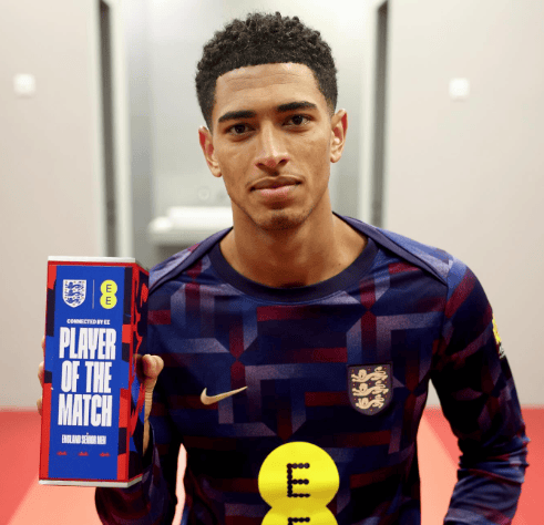 表现突出,贝林厄姆当选对阿尔巴尼亚一役英格兰队内最佳