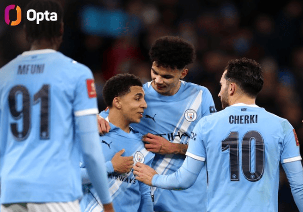 曼城1987年来首次单场打进10球,当时还在第二级别联赛