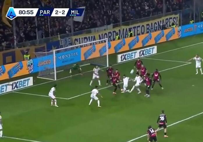布里奇吉右路起球,德尔普拉托头球破门扳平,帕尔马2-2