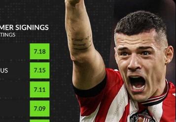 英超夏窗新援联赛场均评分:扎卡第1,库杜斯第2,库尼亚第4