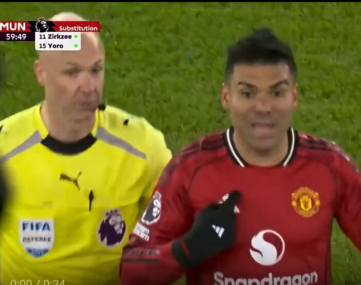 怎么换我?卡塞米罗被阿莫林换下时表情里充满困惑