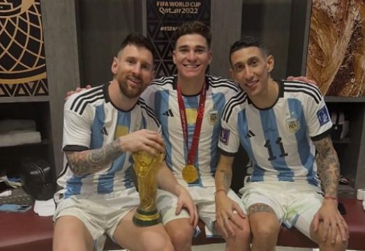 小蜘蛛晒与梅西、迪马利亚合照纪念世界杯夺冠:三年了