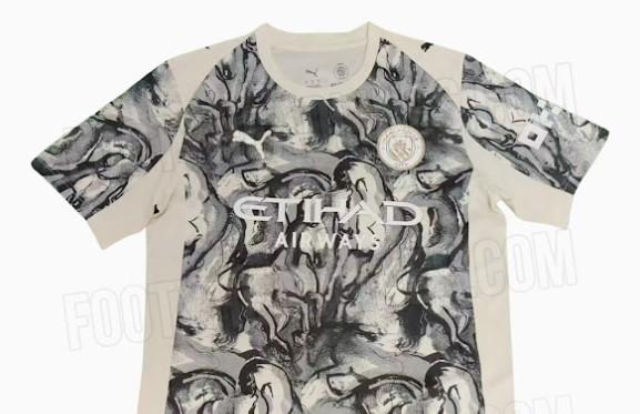 灵感源自水墨画,曼城马年球衣谍照出炉:米白色+马头图案