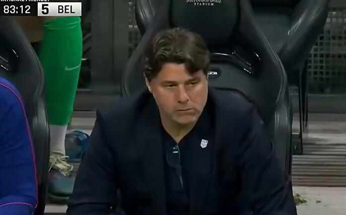 看到美国队大比分落后比利时,波切蒂诺脸直接黑了