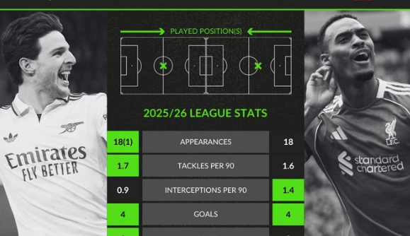 赖斯、赫拉芬贝赫数据对比:进球4-4,场均抢断1.7-1.6