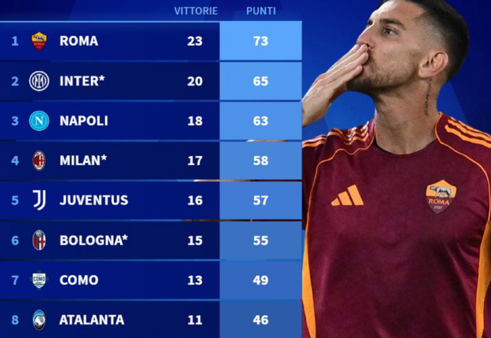 罗马本季意甲11轮24分,意甲三分制时代第六次达成这一成绩