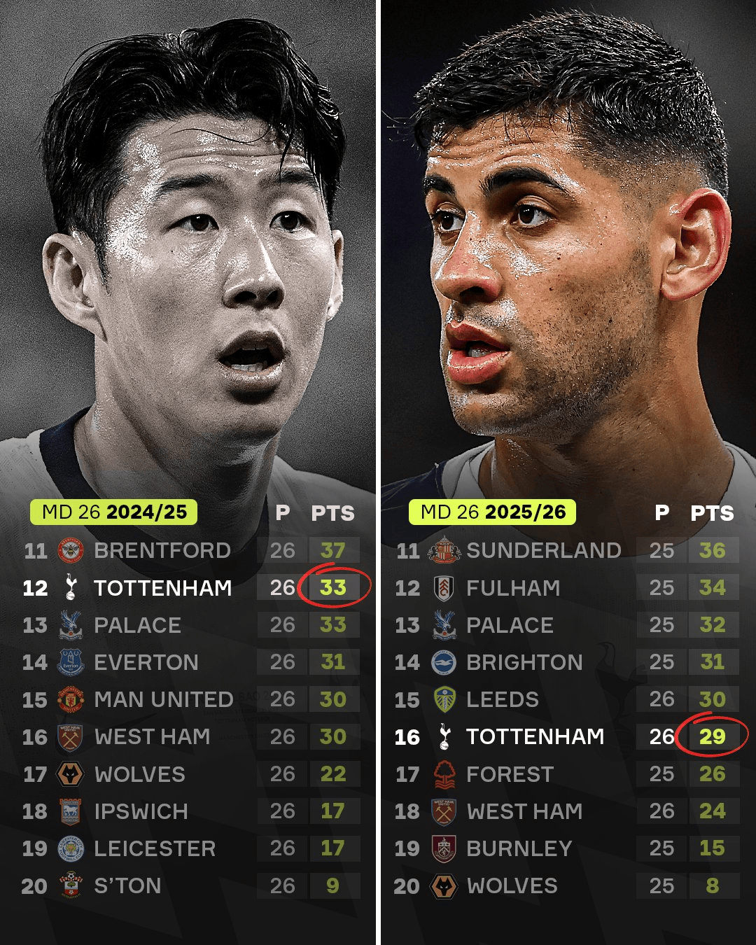 热刺本赛季联赛积29分比上赛季同期还少4分,但欧冠排名第四