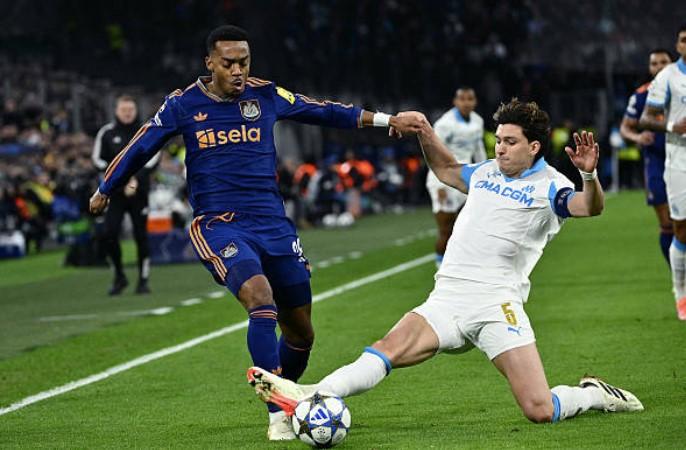 马赛0-1纽卡半场数据:控球74%-26%,良机2-1,射门8-9