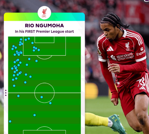 首次英超首发表现惊艳,英超官方晒恩古莫哈本场热区图