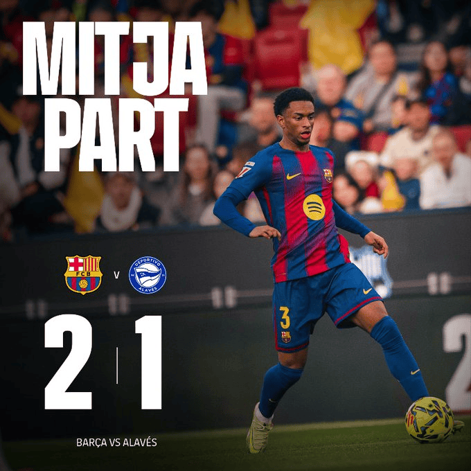 巴萨2-1阿拉维斯半场数据:射门7-7,射正2-3,绝对机会3-4