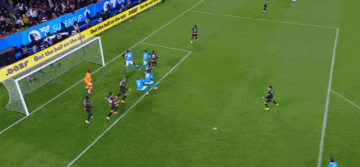 迈尼昂出击摘球没把球拿稳,险些导致丢球