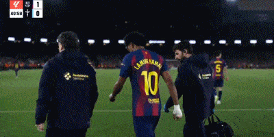 亚马尔罚完点球腿部感觉不适伤退,直接走回更衣室