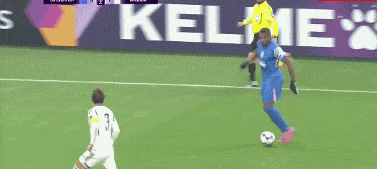 素帕那反击半单刀的射门机会,被胡荷韬回防放铲解围