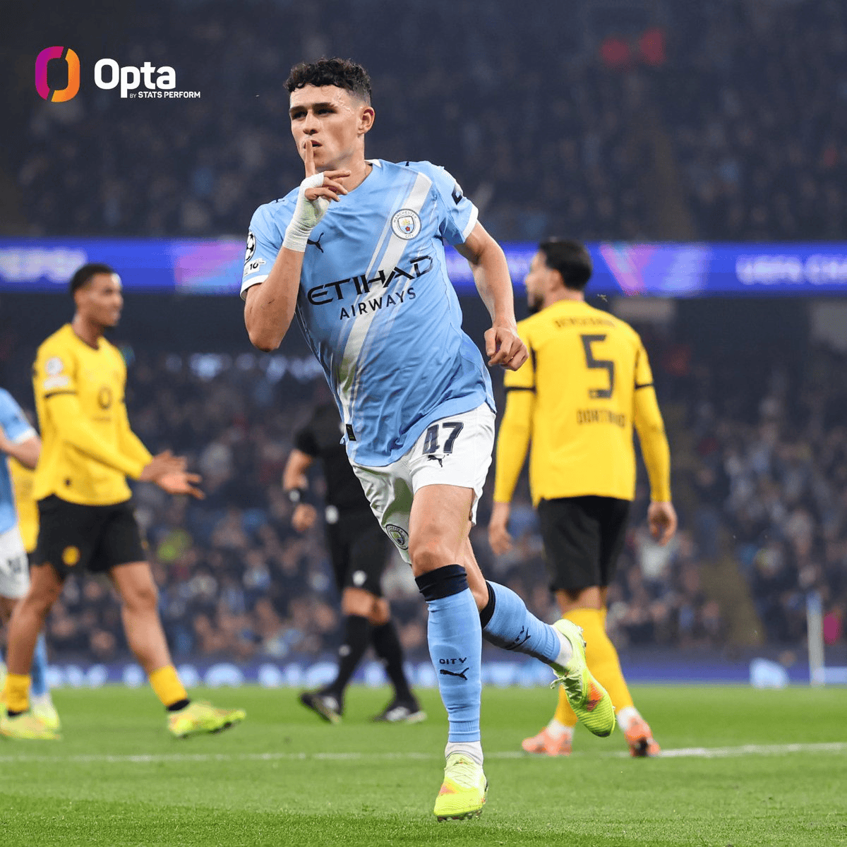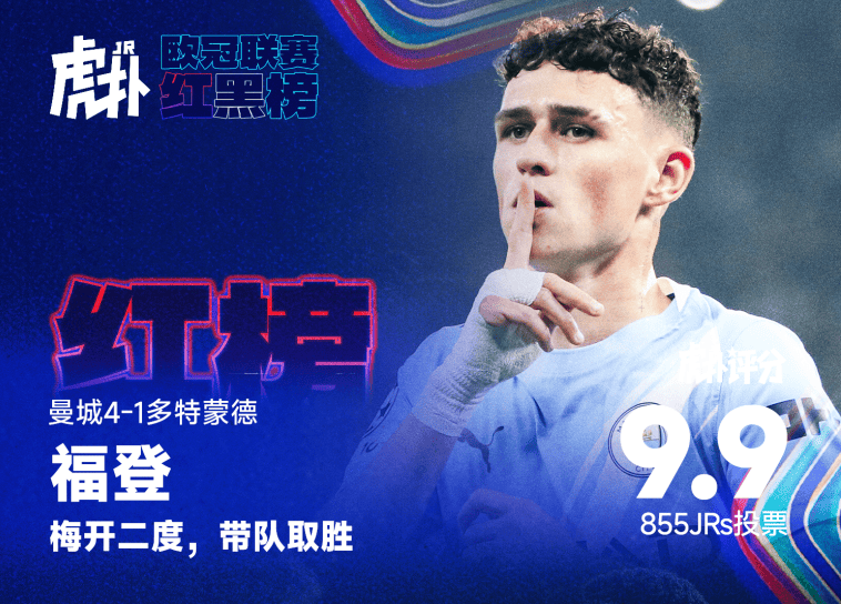 欧冠官方:福登当选曼城4-1多特全场最佳球员