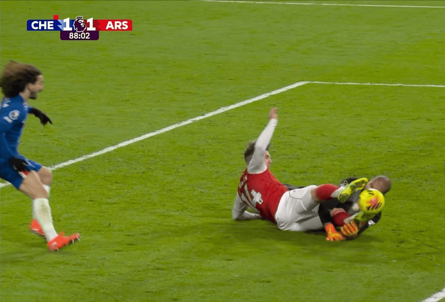 劳尔-希门尼斯用手抢点射门偏出,并被黄牌警告