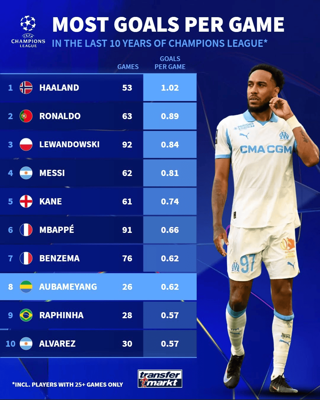 奥巴梅扬双响,马赛队史首次欧冠对阵英超球队打进2球