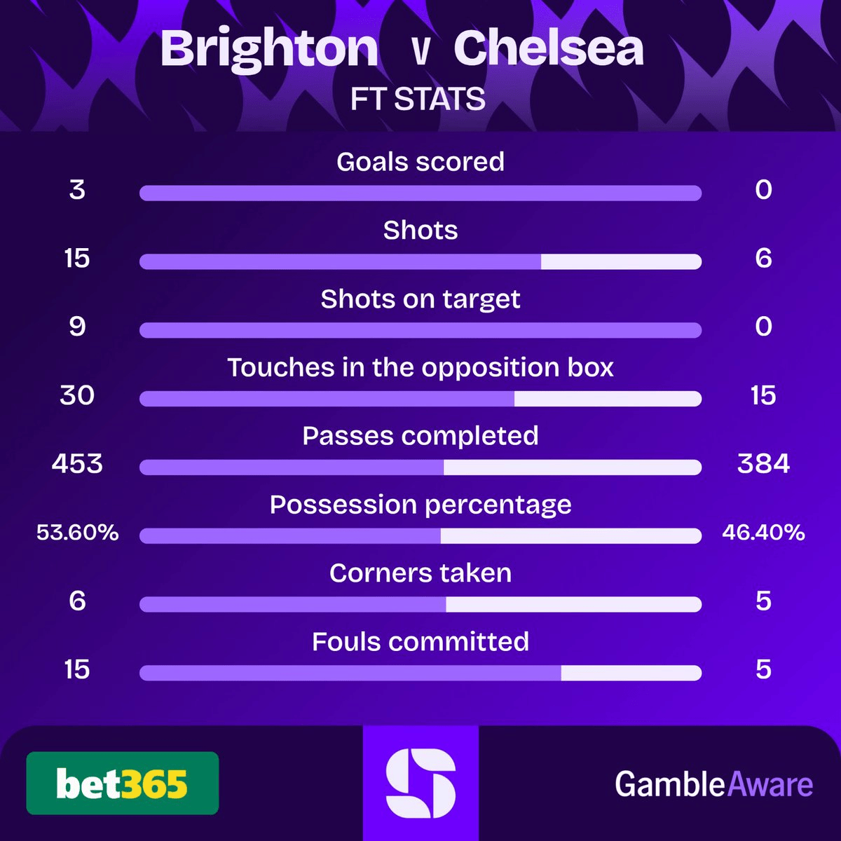 如果本场取胜,布莱顿将会是第一次对切尔西取得4连胜