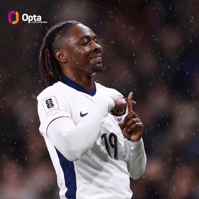 埃泽国家队生涯前三球都是替补打进,是英格兰历史第二人