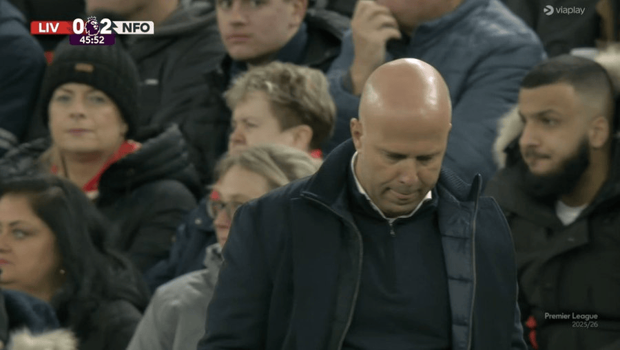 利物浦跟队:森林球迷嘲讽斯洛特,高唱他明天就要被解雇了