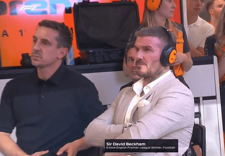 F1卡塔尔站正赛起跑,加里-内维尔、贝克汉姆现身迈凯伦P房