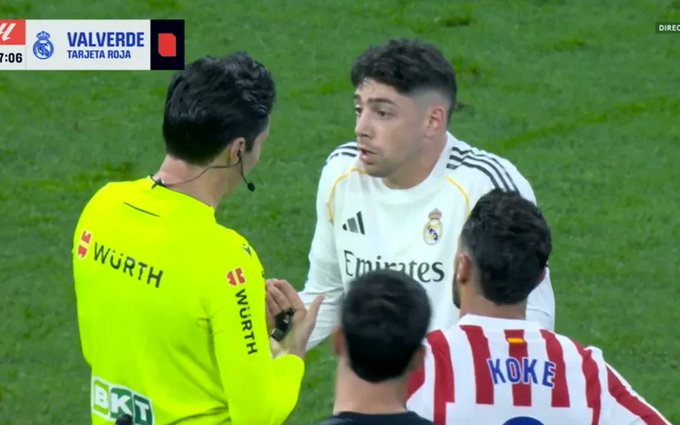 直红,巴尔韦德是近17年西甲马德里德比首位被罚下皇马球员