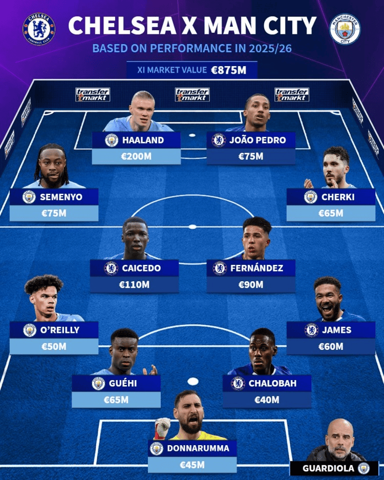 曼城、切尔西合体阵容:哈兰德领衔,凯塞多、恩佐在列