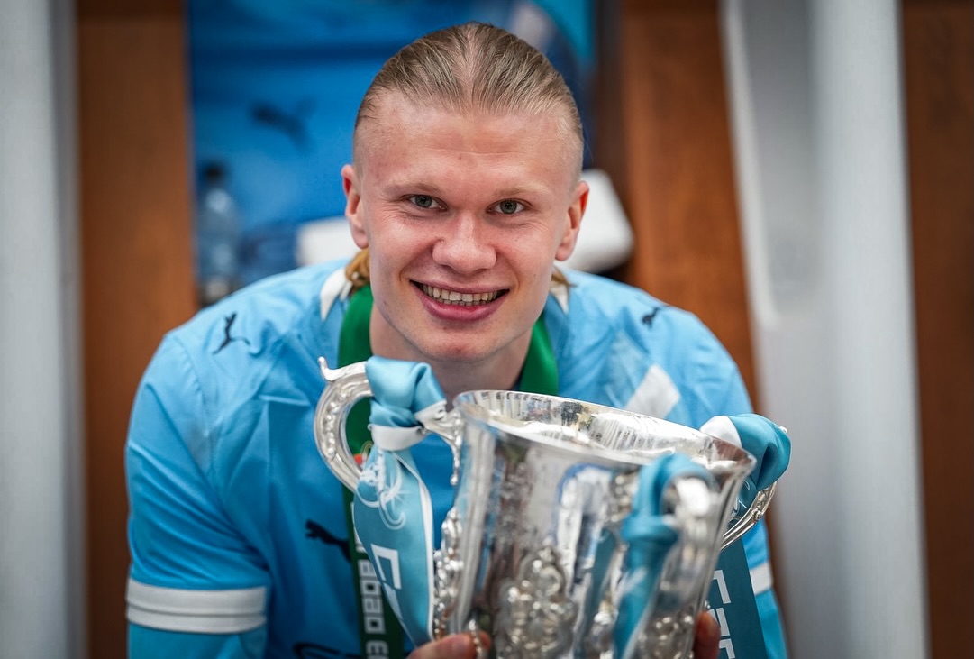 哈兰德社媒晒联赛杯冠军庆祝图集:这就是我们!🩵