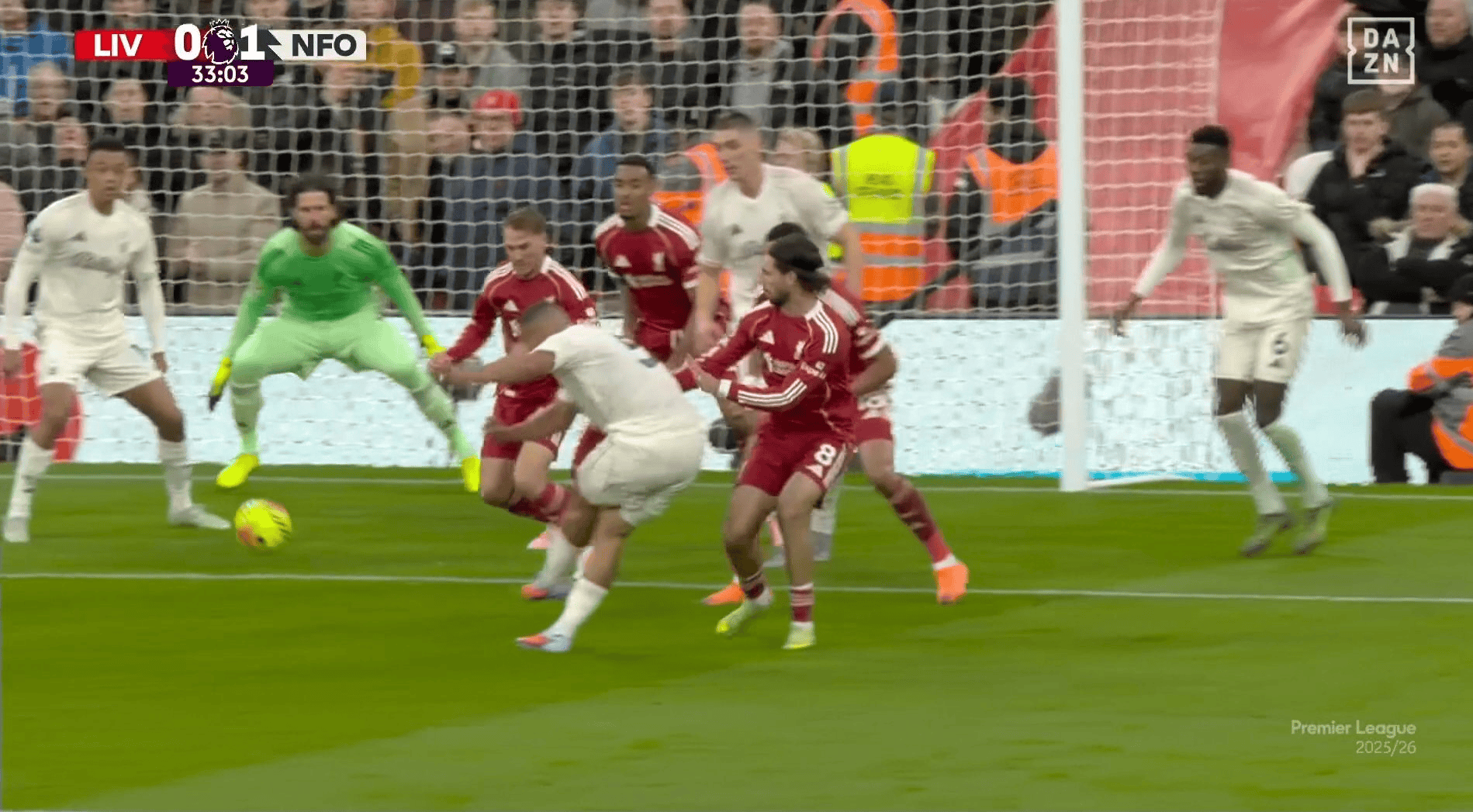 英超官方:VAR认定恩多耶不在阿利松视线内,森林进球有效