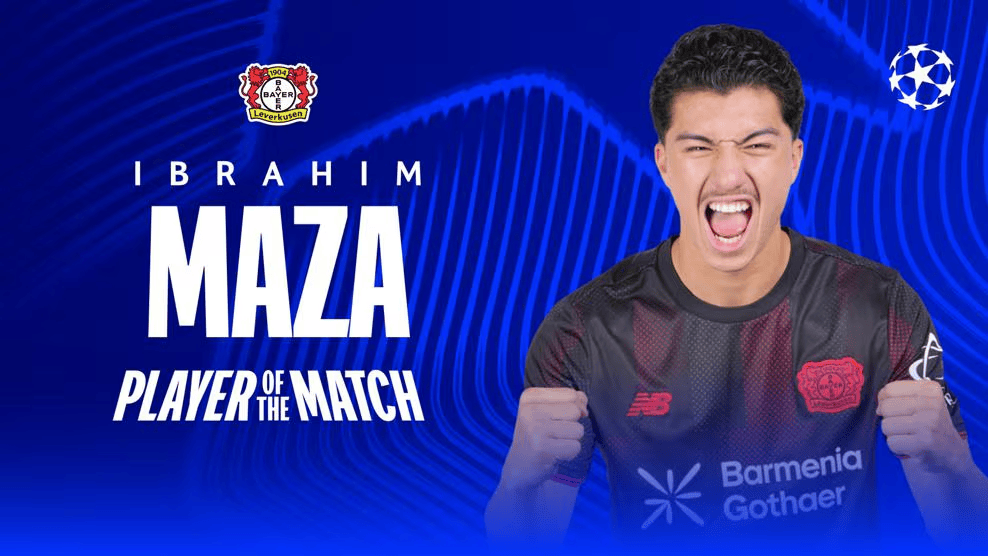 欧足联官方:马扎当选本菲卡vs勒沃库森全场最佳球员