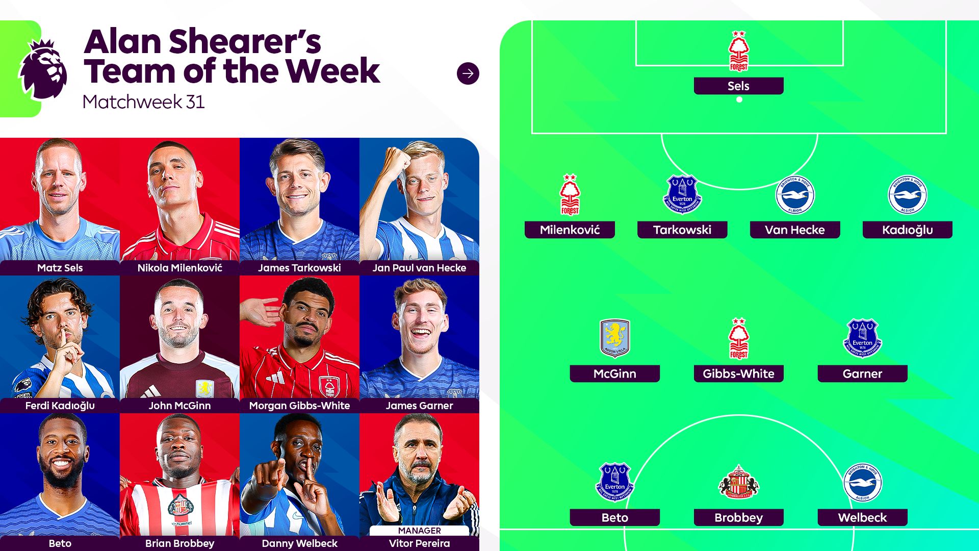 希勒评本轮英超最佳阵容:维尔贝克、贝托、塞尔斯等在列