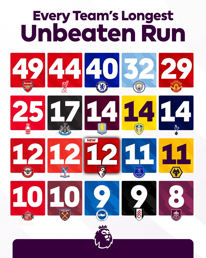 英超历史最长不败纪录:阿森纳49场居首,利物浦、切尔西前3
