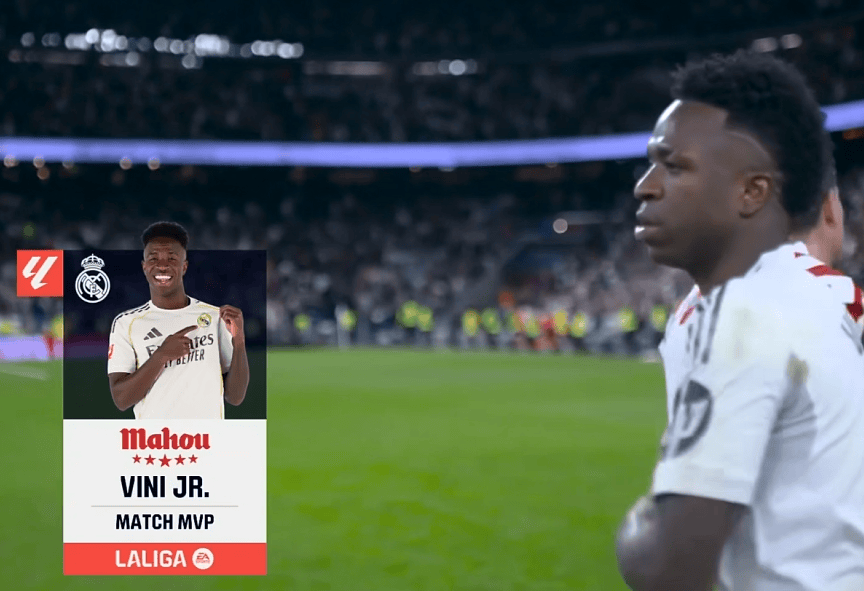 梅开二度,维尼修斯当选皇马vs马竞球迷票选全场最佳