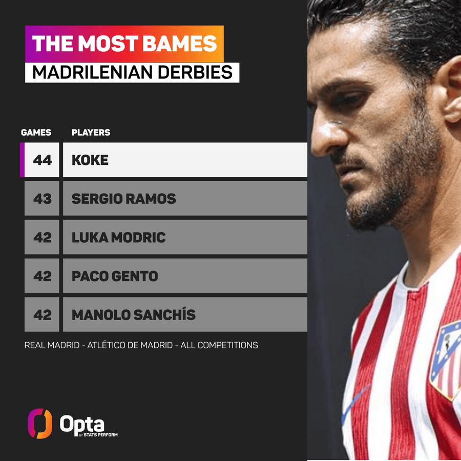 超越拉莫斯,科克出战44场马德里德比历史最多