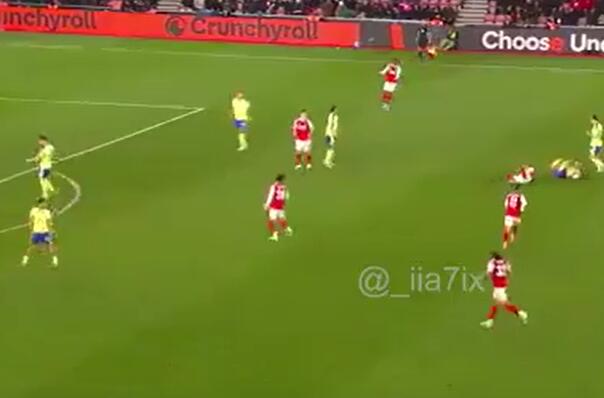 补时阿森纳获得任意球,马丁内利开球时推开主裁被出示黄牌