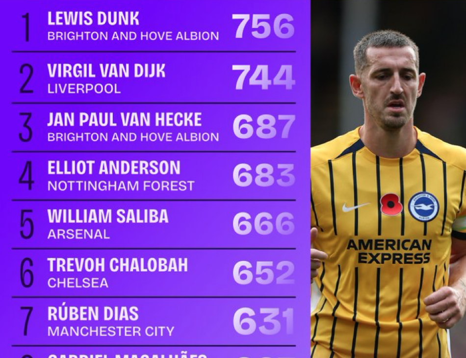 756次!邓克是本赛季英超成功传球最多的球员,范戴克第二