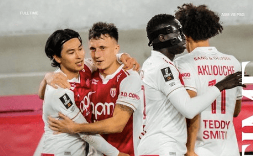 摩纳哥1-0巴黎全场数据:射门10-14,良机1-2,红牌1-0