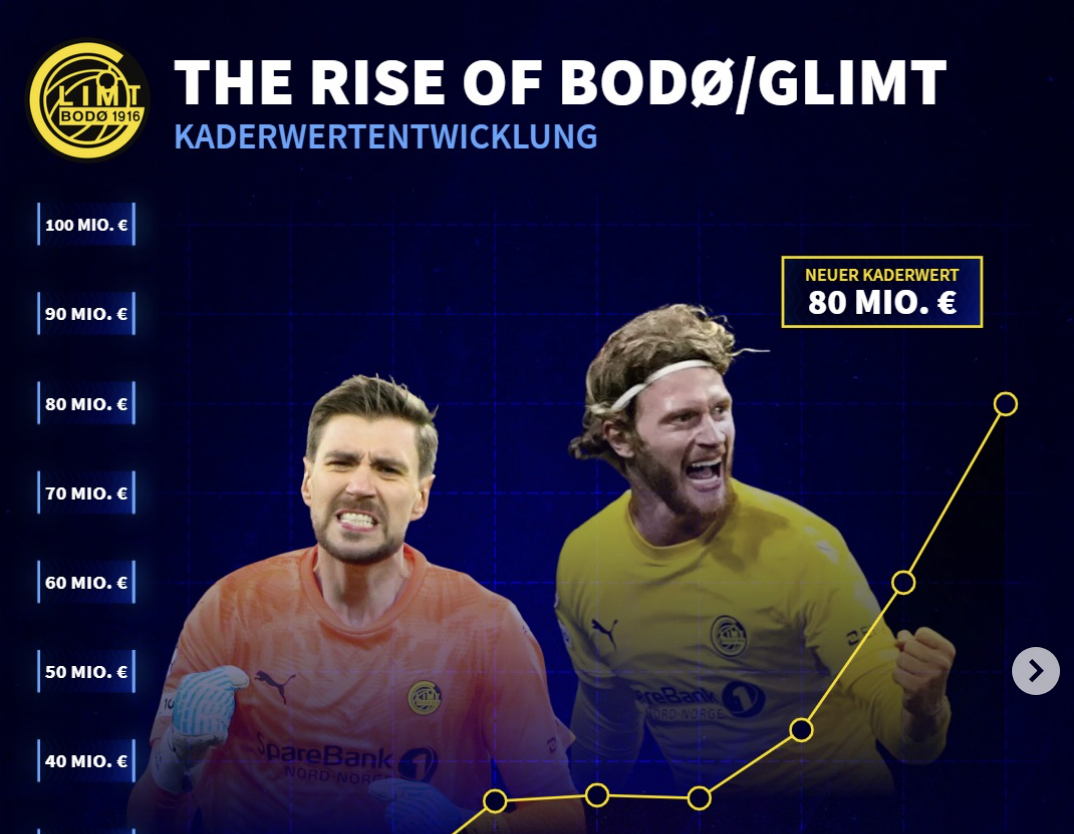 半年暴涨40%!欧冠黑马博德闪耀球队身价涨至8000万欧