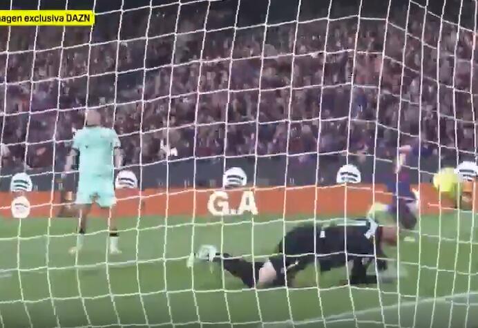 莱万进球后,拉波尔塔在看台上说:我以为出界了呢