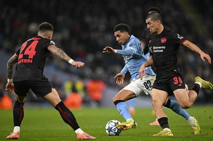 半场:曼城0-1勒沃库森,格里马尔多爆射建功