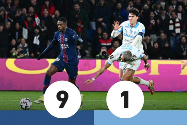 队报赛后评分:登贝莱9分,果然金球;巴莱尔迪1分,铅球奖